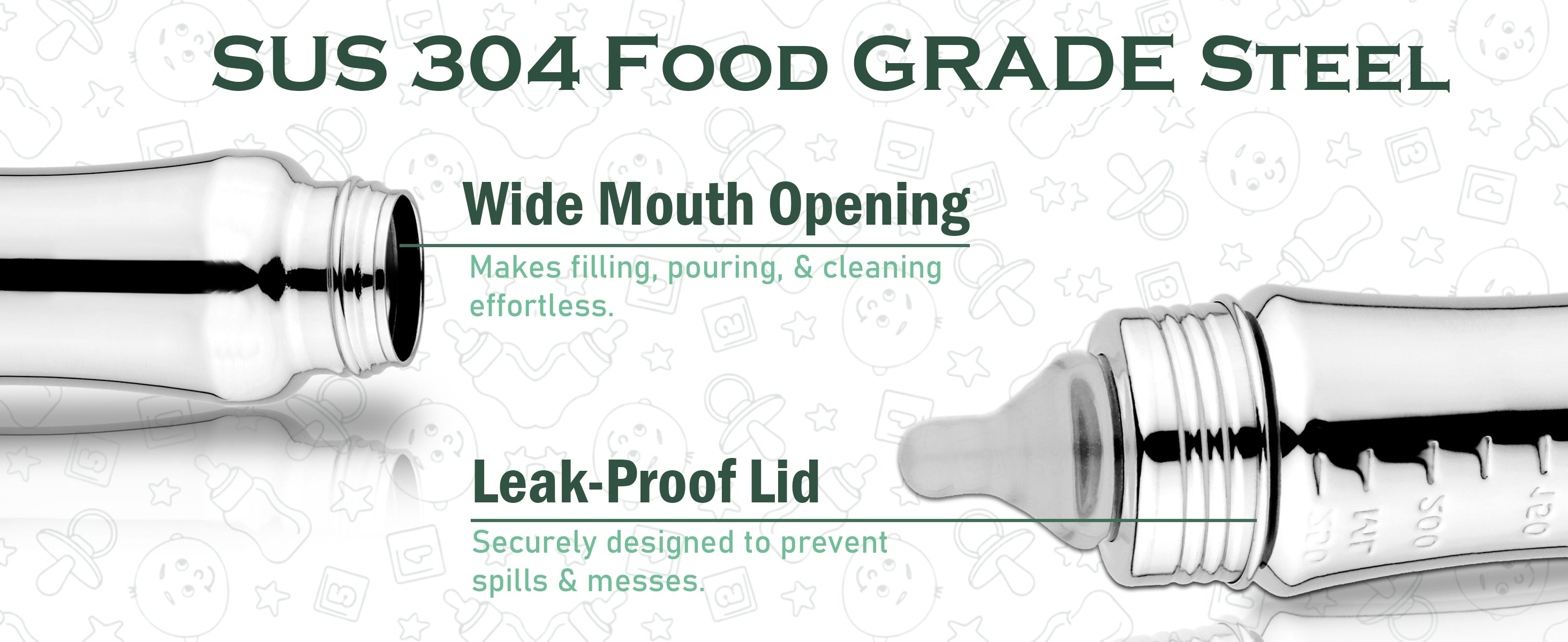 - WIDE NECK DESIGN : The wide neck makes filling and cleaning the bottle a breeze, saving you time and effort. Temperature Retention: Stainless steel has excellent temperature retention properties, keeping liquids warmer or cooler for longer, as needed for your baby's comfort.